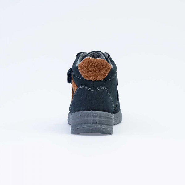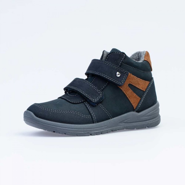 Ботинки в спортивном стиле из натуральной кожи с подкладкой из байки с 80% содержанием шерсти. Утепленная подкладка сохраняет тепло. Удобная застежка - две липучки - позволяет надежно зафиксировать обувь на стопе, легко обувать и снимать ее. Мягкий манжет создает комфорт при ходьбе и предотвращает натирание ножки ребенка.В носочной части и области задника есть дополнительная кожаная накладка с полиуретановым покрытием для увеличения износостойкости.Дополнительную защиту от осенней прохлады придаёт войлочная стелька, которую можно вытащить для просушки, воспользовавшись специальной петлёй. Подошва литьевого метода крепления легкая и гибкая, имеет анатомическую форму следа, повторяя изгибы свода стопы. Удобная колодка обеспечивает комфорт во время долгих прогулок.Материал подошвы: ПУ