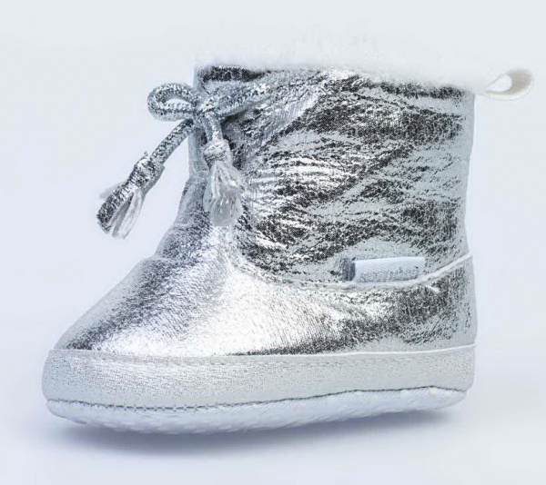Блестящие, теплые, текстильные пинетки на меху. Благодаря конструкции с липучкой пинетки подойдут на ногу любого малыша. Модель декорирована принтом.Материал подошвы: Текстиль